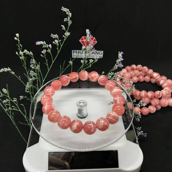 (Tiếng Việt) Vòng Tay Đá Đào Hoa Rhodochrosite Mix Thạch Anh Tóc Vip